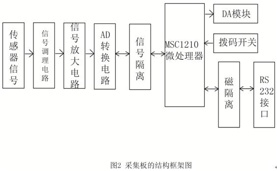 數(shù)據(jù)采集控制單元的作用:采集板為獨立的工作機制,核心是由獨立的CPU(MSC1210)完成對現(xiàn)場信號的采集,外部執(zhí)行機構的控制由主板發(fā)送指令報文完成。