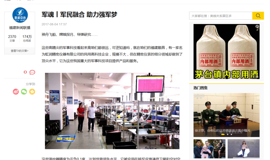 虹潤精密儀器:軍民融合 助力強(qiáng)軍夢——福建電視臺