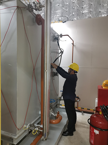 11月7日凌晨6點,東方剛露出魚肚白。孫利勤踏著晨露,帶著虹潤產(chǎn)品和測試安裝設(shè)備馬不停蹄來到了珠海港口,經(jīng)過2個多小時的海上跋涉,終于到了海上風電升壓站現(xiàn)場,對于客戶提到的技術(shù)要求,孫利勤先是對現(xiàn)場環(huán)境進行測試和判斷,與客戶認真溝通制定了技術(shù)應用方案,并于次日成功安裝。虹潤儀表現(xiàn)場表現(xiàn)良好,對海上升壓站TC690L柴油發(fā)電設(shè)備液位控制精度高且運行穩(wěn)定,得到了客戶的好評。解決了客戶的技術(shù)需求,虹潤人的心也放下了,這次跨越大海的技術(shù)服務(wù)終于不辱使命。