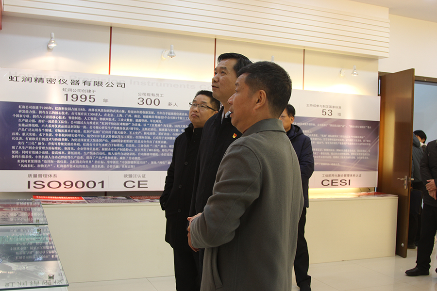 2020年12月15日,南平市袁超洪市長一行在順昌縣委書記邱建斌等人陪同下蒞臨虹潤公司考察調(diào)研。虹潤公司董事長林善平熱情接待。袁市長一行在林善平董事長陪同下參觀了虹潤公司文化展廳和產(chǎn)品科技展廳,林善平董事長向袁市長詳細(xì)匯報了公司的創(chuàng)業(yè)歷程和有關(guān)轉(zhuǎn)型升級、技術(shù)研發(fā)、智能制造、市場銷售等具體情況。袁市長認(rèn)真聽取了匯報,當(dāng)他聽到虹潤公司在疫情過后整體營商環(huán)境低迷的情況下,著力在電商營銷領(lǐng)域發(fā)力,整體銷售不降反增,同比增長20%,同時在已有六大系列儀表基礎(chǔ)上又新推水質(zhì)分析儀、電能質(zhì)量分析儀、溫濕度記錄儀、可編程繼電器等四大系列產(chǎn)品時,高興的說虹潤公司還要進一步創(chuàng)新,開拓更多的儀器儀表科技領(lǐng)域,進一步擴大市場。