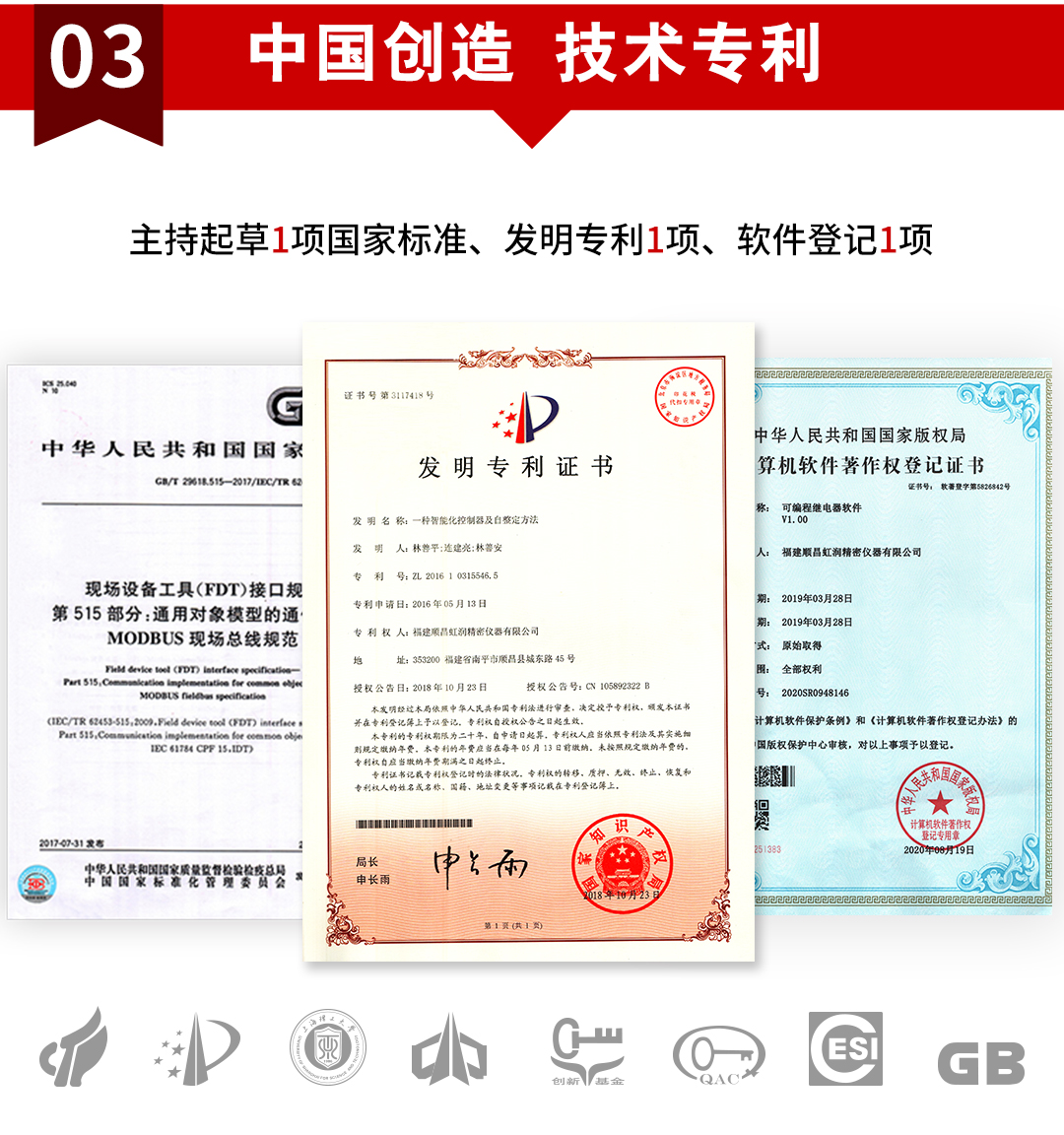 虹潤公司是專業(yè)生產(chǎn)PLC控制器的國家專精特新“小巨人”企業(yè)。生產(chǎn)的簡易PLC控制器,具有全隔離設(shè)計(jì),中文編程,專業(yè)邏輯控制與時間,梯形圖編程方式,遠(yuǎn)程RS485通訊監(jiān)測等特點(diǎn)。產(chǎn)品獲得智能化控制器、多通道可編程繼電器等2項(xiàng)國家發(fā)明專利;主持起草流程工業(yè)中電氣/儀表和控制系統(tǒng)的試車國家標(biāo)準(zhǔn),通信系統(tǒng)多通道數(shù)據(jù)采集控制終端規(guī)范軍用標(biāo)準(zhǔn),以及現(xiàn)場設(shè)備集成等5項(xiàng)智能制造國家標(biāo)準(zhǔn),參與國際5G標(biāo)準(zhǔn)制定,取得可編程繼電器等2項(xiàng)相關(guān)軟件著作權(quán)。產(chǎn)品廣泛應(yīng)用于工業(yè)自動化設(shè)備、電氣自動化系統(tǒng)、農(nóng)業(yè)灌溉、包裝機(jī)械、印刷機(jī)械、樓宇自控等諸多領(lǐng)域。