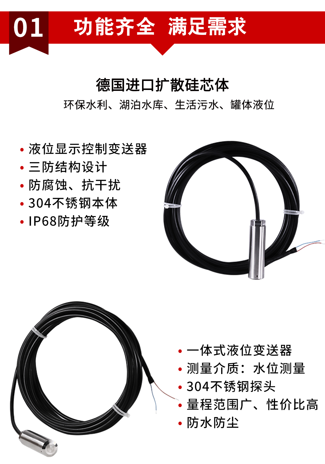 虹潤(rùn)公司是專(zhuān)業(yè)生產(chǎn)液位變送器的國(guó)家專(zhuān)精特新“小巨人”企業(yè),生產(chǎn)的投入式液位變送器,具有采用進(jìn)口芯體,精準(zhǔn)測(cè)量,過(guò)壓保護(hù),高抗干擾,IP68防護(hù)等級(jí)等特點(diǎn)。產(chǎn)品獲得一種數(shù)字顯示低功耗壓力表、一種信號(hào)發(fā)生器裝置等2項(xiàng)國(guó)家發(fā)明專(zhuān)利,主持起草工業(yè)過(guò)程控制系統(tǒng)用模擬輸入兩位或多位輸出儀表、工業(yè)過(guò)程測(cè)量和控制系統(tǒng)用壓力/差壓變送器等2項(xiàng)國(guó)家標(biāo)準(zhǔn),通信系統(tǒng)多通道數(shù)據(jù)采集控制終端規(guī)范軍用標(biāo)準(zhǔn),以及現(xiàn)場(chǎng)設(shè)備集成等5項(xiàng)智能制造國(guó)家標(biāo)準(zhǔn)。參與國(guó)際5G標(biāo)準(zhǔn)制定,取得數(shù)顯壓力表等2項(xiàng)相關(guān)軟件著作權(quán)。產(chǎn)品廣泛應(yīng)用于電力、冶金、農(nóng)業(yè)、食品、制藥、水處理等對(duì)液位監(jiān)測(cè)需求的行業(yè)領(lǐng)域。