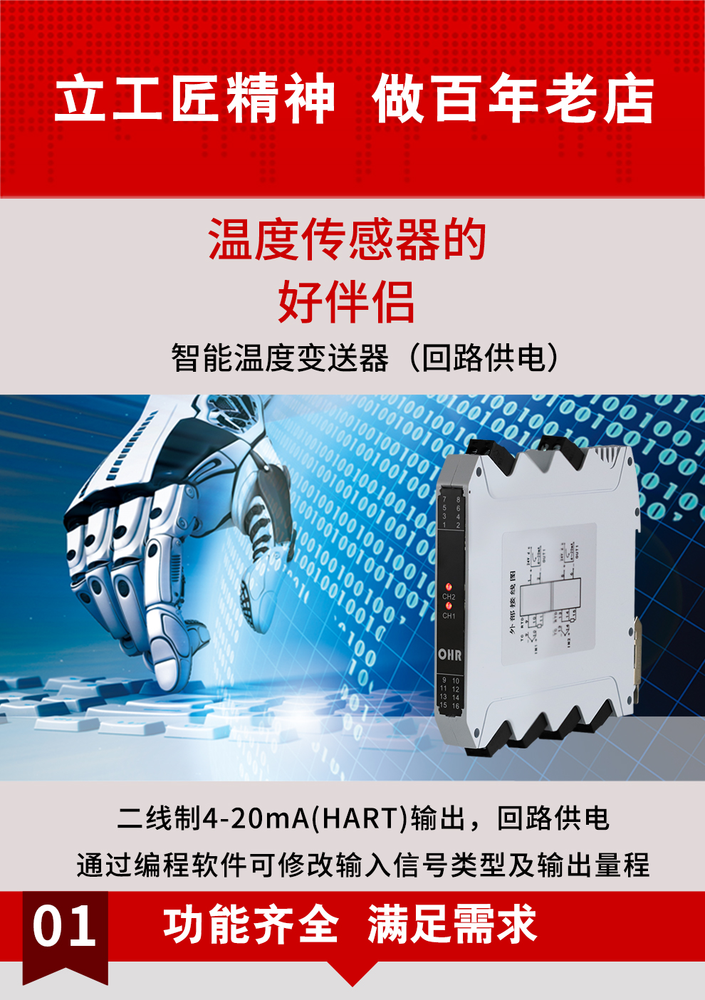虹潤公司是專業(yè)生產溫度變送器的國家專精特新“小巨人”企業(yè)。生產的HART智能溫度變送器,具有適配各類溫度傳感器,通過編程線修改輸入信號類型及量程,二線制4-20Ma(HART)輸出,回路供電等特點。該產品不僅通過HART基金會認證、德國萊茵 CE 認證與 SIL 功能安全認證,還獲得具備減震抗干擾能力的溫度變送器、信號隔離器、一種二端子模塊、無源信號隔離器等4項國家發(fā)明專利,主持起草物聯(lián)網智能溫度儀表、現場設備工具(FDT)接口規(guī)范、工業(yè)過程測量和控制系統(tǒng)用溫度變送器等3項國家標準,以及通信系統(tǒng)多通道數據采集控制終端規(guī)范軍用標準,參與國際5G標準制定,取得HART溫度變送器、智能溫度變送器等5項相關軟件著作權。產品廣泛應用于石油、化工、電力、冶金、制藥、食品、水處理等各種工業(yè)領域。