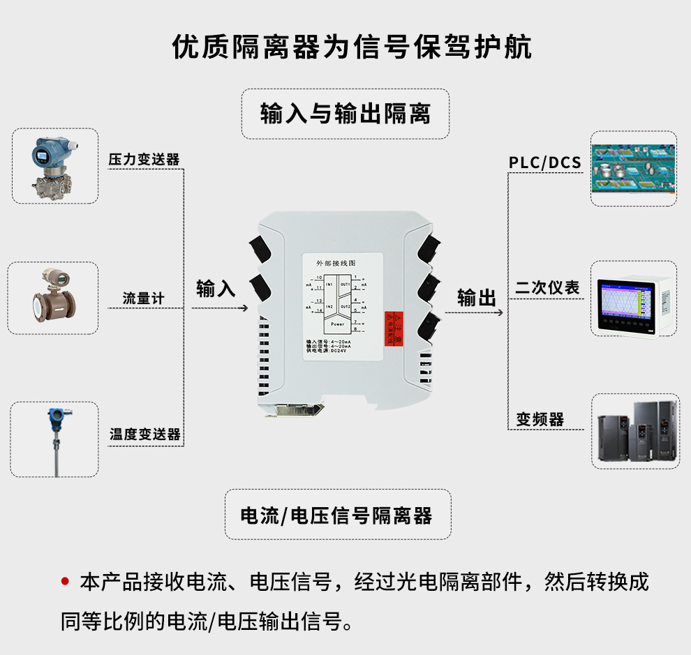 虹潤公司是專業(yè)生產(chǎn)隔離器的國家專精特新“小巨人”企業(yè)。生產(chǎn)的智能信號隔離器涵蓋電流電壓變送器、溫度變送器、配電器、頻率轉(zhuǎn)換器、開關(guān)量轉(zhuǎn)換器及通訊轉(zhuǎn)換器等多種產(chǎn)品類型。產(chǎn)品獲得信號隔離器、一種二端子模塊、無源信號隔離器等3項國家發(fā)明專利,主持起草現(xiàn)場設(shè)備工具(FDT)接口規(guī)范、工業(yè)過程測量和控制系統(tǒng)用隔離式安全柵、工業(yè)過程測量和控制系統(tǒng)用配電器等3項國家標準,以及通信系統(tǒng)多通道數(shù)據(jù)采集控制終端規(guī)范軍用標準,參與國際5G標準制定,取得導(dǎo)軌式智能隔離器、頻率轉(zhuǎn)換器等3項相關(guān)軟件著作權(quán)。產(chǎn)品廣泛電力、冶金、工業(yè)電爐、變電站、高壓電機房等需要電隔離的工業(yè)自動化控制系統(tǒng)。