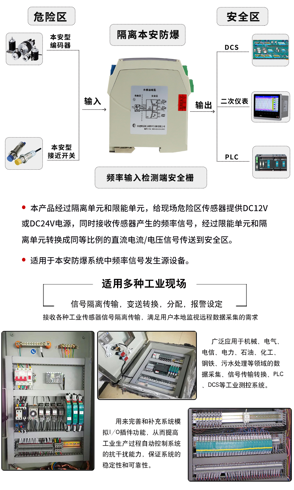 虹潤(rùn)公司是專業(yè)生產(chǎn)隔離器的國(guó)家專精特新“小巨人”企業(yè)。生產(chǎn)的隔離式安全柵涵蓋信號(hào)頻率輸入、電壓輸入、電流輸入、熱電阻輸入、熱電偶輸入、開關(guān)量輸入等多種產(chǎn)品類型。產(chǎn)品獲得具備減震抗干擾能力的溫度變送器、信號(hào)隔離器、一種二端子模塊、無(wú)源信號(hào)隔離器等4項(xiàng)國(guó)家發(fā)明專利,主持起草物聯(lián)網(wǎng)智能溫度儀表、現(xiàn)場(chǎng)設(shè)備工具(FDT)接口規(guī)范、工業(yè)過程測(cè)量和控制系統(tǒng)用溫度變送器等3項(xiàng)國(guó)家標(biāo)準(zhǔn),以及通信系統(tǒng)多通道數(shù)據(jù)采集控制終端規(guī)范軍用標(biāo)準(zhǔn)。參與國(guó)際5G標(biāo)準(zhǔn)制定,取得智能隔離式安全柵等4項(xiàng)相關(guān)軟件著作權(quán)。產(chǎn)品廣泛應(yīng)用于石油、電力、化工,冶金、智能制造、污水處理等諸多行業(yè)。