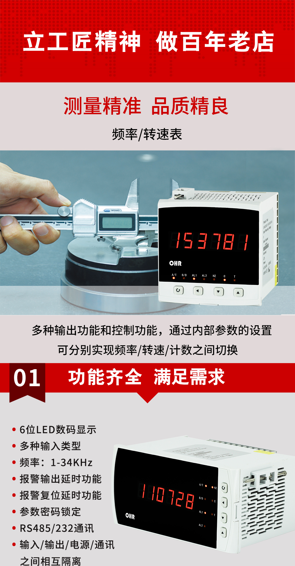 虹潤公司是專業(yè)生產(chǎn)頻率表的國家專精特新“小巨人”企業(yè)。生產(chǎn)的頻率/轉(zhuǎn)速表,具有可實現(xiàn)頻率、轉(zhuǎn)速與計數(shù)功能的切換,報警繼電器輸出,變送輸出,RS485通訊等特點。產(chǎn)品獲得基于儀表殼體、一種儀表電源等2項國家發(fā)明專利,主持起草流程工業(yè)中電氣/儀表和控制系統(tǒng)的試車國家標準,通信系統(tǒng)多通道數(shù)據(jù)采集控制終端規(guī)范軍用標準,以及現(xiàn)場設(shè)備集成等5項智能制造國家標準。參與國際5G標準制定,取得頻率轉(zhuǎn)速儀表等2項相關(guān)軟件著作權(quán)。產(chǎn)品廣泛應(yīng)用于電力系統(tǒng)、機械制造、汽車工業(yè)、航空航天、船舶海事、冶金礦山等行業(yè)的頻率與轉(zhuǎn)速參數(shù)監(jiān)測。