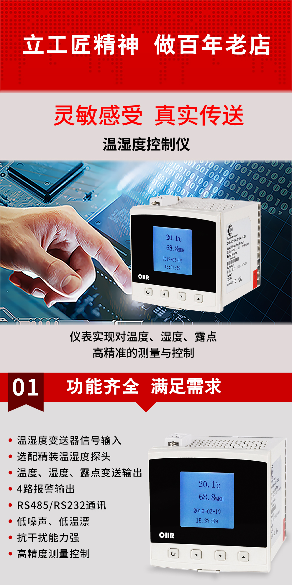 虹潤公司是專業(yè)生產環(huán)境監(jiān)測儀表的國家專精特新“小巨人”企業(yè)。生產的盤裝式溫濕度控制器,具有溫度、濕度、露點高精準的測量,壁掛式結構,IP65防護穩(wěn)定性強,高抗干擾,帶RS485/RS232通訊輸出等級等特點。產品獲得一種手持式低功耗溫濕度檢測儀、大屏幕溫濕度記錄儀等2項國家發(fā)明專利,主持起草物聯網智能溫度儀表通用技術條件、冷鏈溫度記錄儀等2項國家標準,通信系統(tǒng)多通道數據采集控制終端規(guī)范軍用標準,以及現場設備集成等5項智能制造國家標準,參與國際5G標準制定,取得溫濕度儀表等2項相關軟件著作權。產品廣泛應用于工業(yè)現場、農業(yè)大棚、倉儲物流、地下管廊、養(yǎng)殖孵化、配電機房等諸多領域。