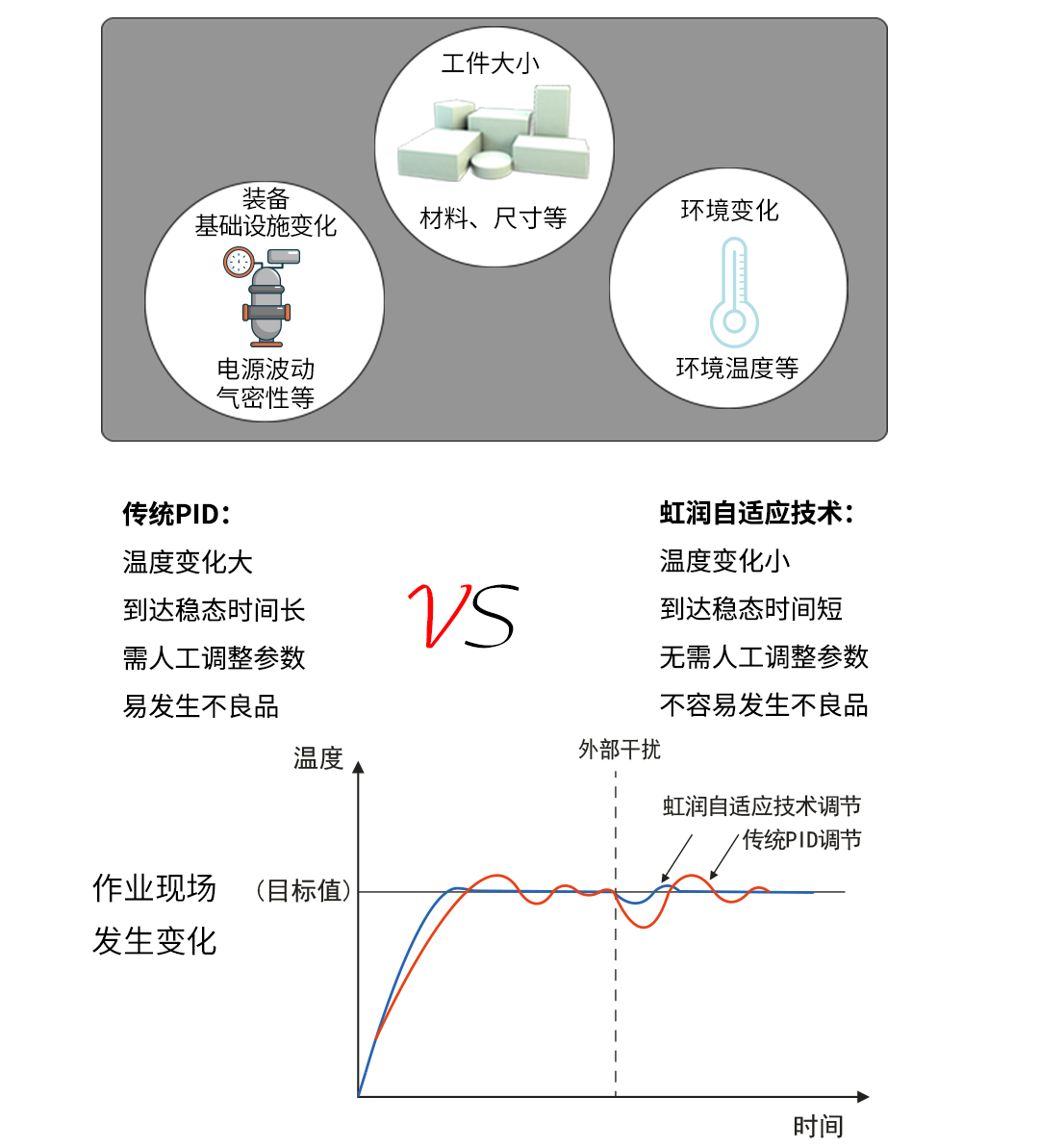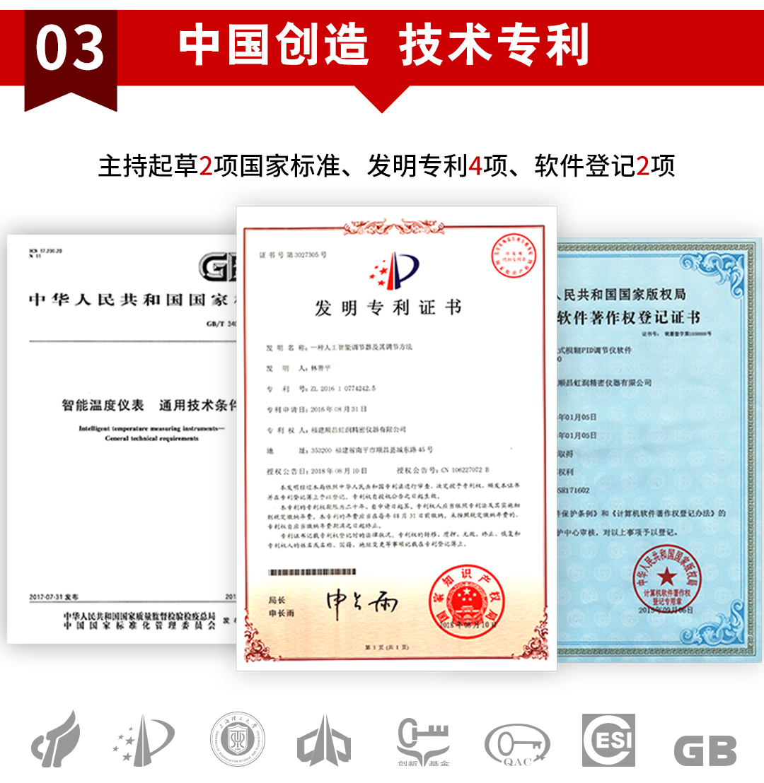 虹潤公司是專業(yè)生產(chǎn)溫控器的國家專精特新“小巨人”企業(yè)。生產(chǎn)的人工智能溫控器,具有真正人工智能算式,無需人工整定參數(shù),控制精度可達(dá)±0.1°C,多種輸出類型,高抗干擾等特點(diǎn)。產(chǎn)品獲得模糊PID控制儀及控制方法、人工智能調(diào)節(jié)器、智能化控制器、移相觸發(fā)控制器、閥門自動手動無擾動操作控制方法及裝置等5項(xiàng)國家發(fā)明專利,主持起草工業(yè)過程控制系統(tǒng)用模擬輸入兩位或多位輸出儀表、物聯(lián)網(wǎng)智能溫度儀表通用技術(shù)條件、工業(yè)過程測量和控制系統(tǒng)用智能調(diào)節(jié)器等3項(xiàng)國家標(biāo)準(zhǔn),以及通信系統(tǒng)多通道數(shù)據(jù)采集控制終端規(guī)范軍用標(biāo)準(zhǔn),參與國際5G標(biāo)準(zhǔn)制定,取得模糊PID溫控儀等3項(xiàng)相關(guān)軟件著作權(quán)。產(chǎn)品廣泛應(yīng)用于電力、石化,冶金、制藥、食品等幾乎所有工業(yè)現(xiàn)場,實(shí)現(xiàn)精準(zhǔn)控溫,保障生產(chǎn)安全與質(zhì)量。