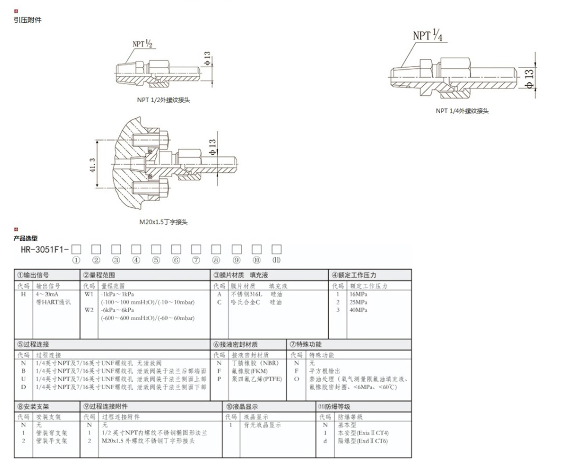 HR-3051F1智能單晶硅微差壓變送器能準確的測量差壓,并把它轉換成4~20mADC的輸出信號。該變送器可通過三按鍵本地操作,或通用手操器、組態(tài)軟件、以及手機APP遠程操作,在不影響4~20mA DC的輸出信號的同時,進行顯示與組態(tài)。